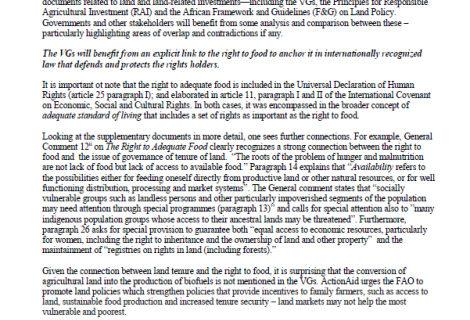ActionAid International Comments on the Zero Draft of the Voluntary Guidelines on the Responsible Governance of Tenure of Land, Fisheries and Forests (VGs) 11 May 2011 Downloads